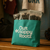 - Stylish turquoise colour with the bold OurKnappyRootz logo